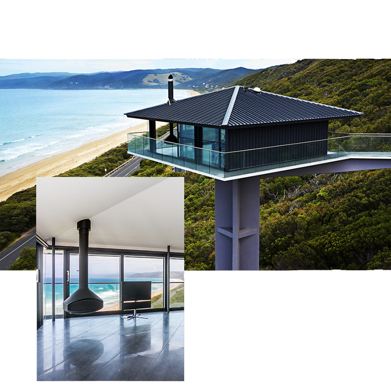 Known for its spectacular visual impact, The Pole House is without a doubt the most photographed architectonic project on Great Ocean Road, in Australia.Suspended at a height of 40 meters, the iconic house appears to be floating among the clouds.