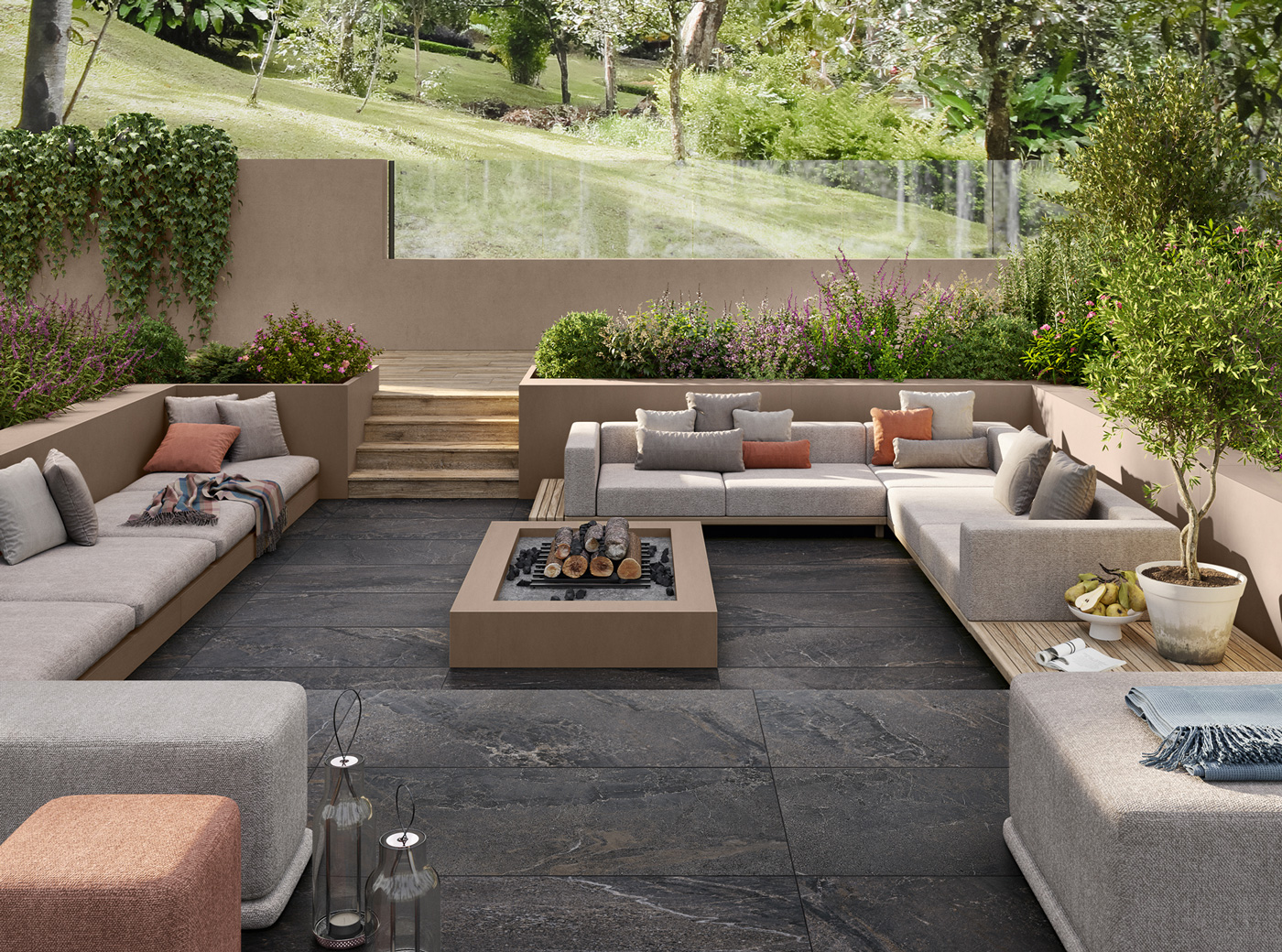 With its refined, mineral beauty, Intense is the ideal choice for outdoor spaces conceived as true open-air rooms. The surfaces express a balance between material strength and visual lightness, creating environments that are elegant, welcoming and enjoyable in every season.