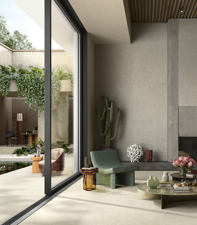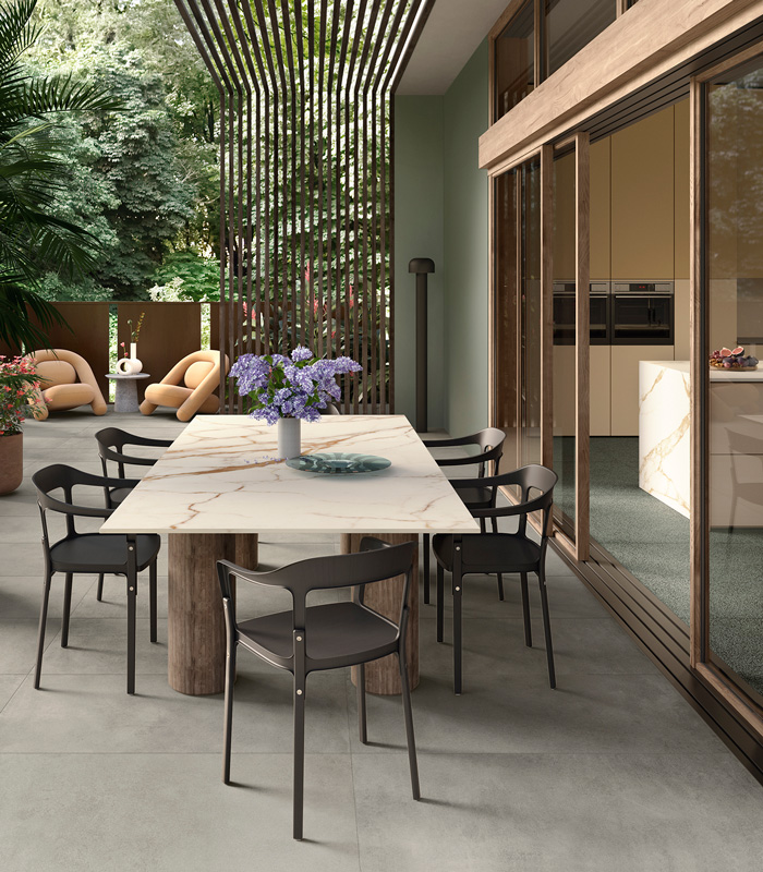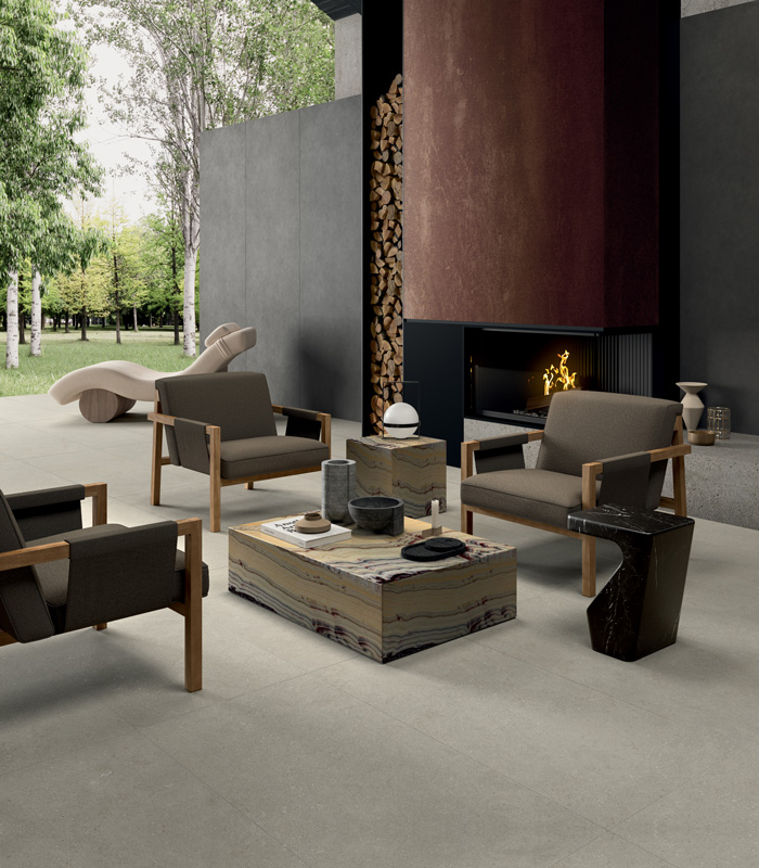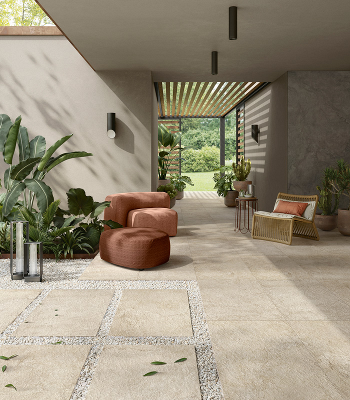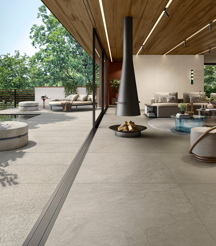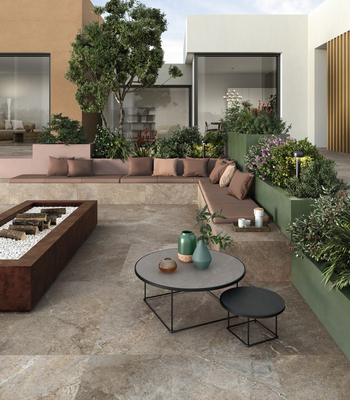 In contemporary design, outdoor spaces are no longer seen as separate areas, but as dimensions increasingly integrated into the architectural project. Terraces, patios, balconies and gardens are transformed into structured environments, where outdoor floors and wall coverings in porcelain stoneware are designed with the same level of attention as interiors.