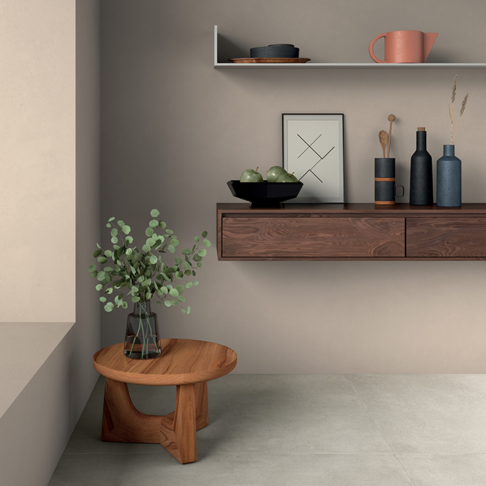 With Concreto, designed by Fabio Novembre, the symbolic material of modern architecture inspires a conceptual operation which, between pure backgrounds and decorative patterns, celebrates the aesthetics of concrete. A complete ceramic collection with three thicknesses, multiple finishes, various sizes and several decorative solutions, permitting a wide range of uses of materials and seamless surfaces, including between indoor and outdoor areas. An aesthetic project that shapes the character of each room: more intimate and private, cosy spaces that uniquely harmonize minimalism and design.