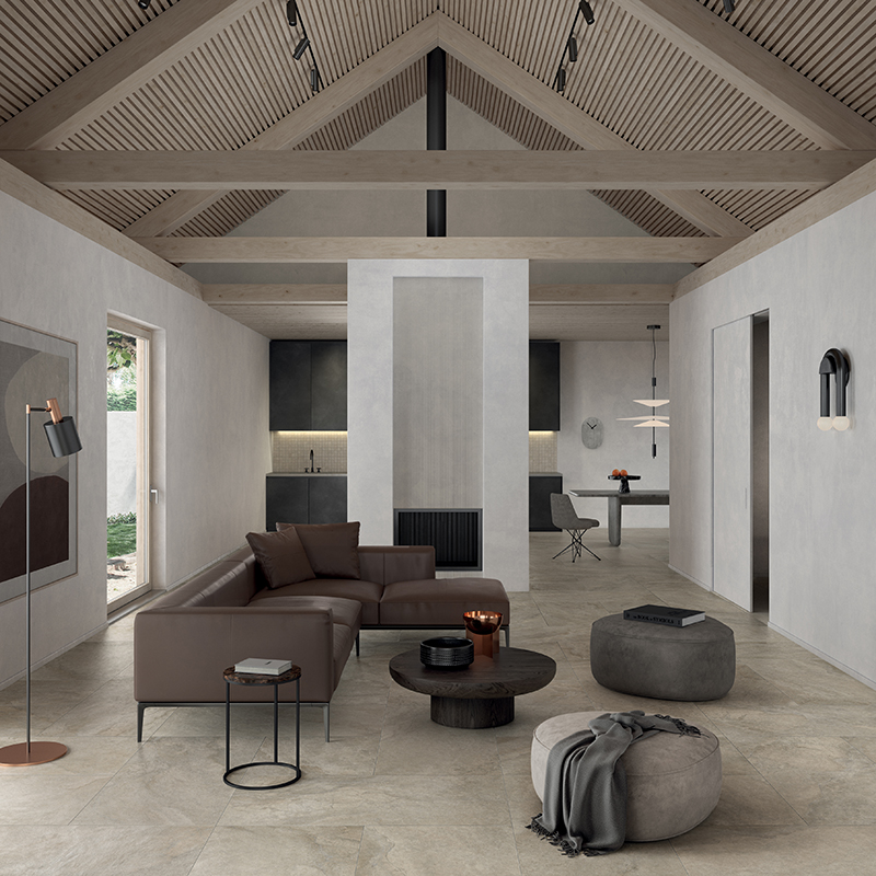 Stone-effect ceramics are ideal for visual continuity between indoor and outdoor spaces. To meet this design need, Lea Ceramiche created the 3-Tech Project: one aesthetic available in three different technologies – Slimtech, 9 mm and 20 mm. This integrated approach ensures perfect coordination between floors and walls, inside and out