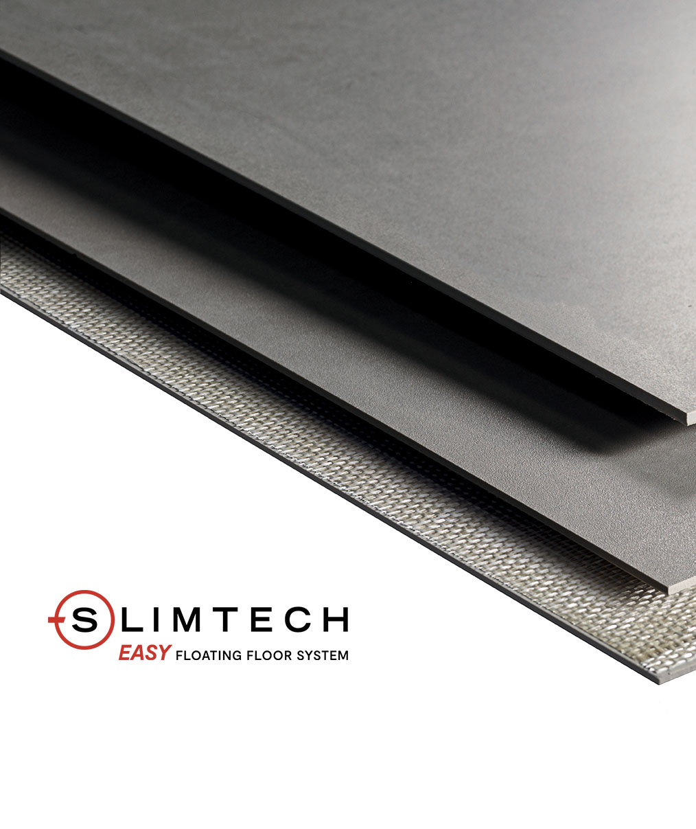 It is soundproof: thanks to the combined action of the SILENT mat and Slimtech Plus. It reduces footfall noise to the lower floor by approximately 16 times more than ordinary adhered ceramic tile floors.