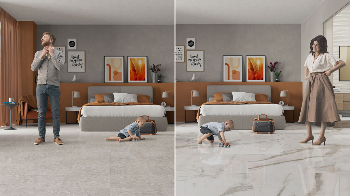The interior flooring market offers various types of materials that are often considered equivalent to ceramic in terms of their aesthetics and functionality. In reality, ceramic tile does not contain plastic and offers countless stylistic solutions such as marble, wood, stone and concrete effects and much more, making it the ideal choice for floors in all types of interiors. You can always find a ceramic tile with exactly the right surface to bring style and safety to the floors of any contemporary living space.