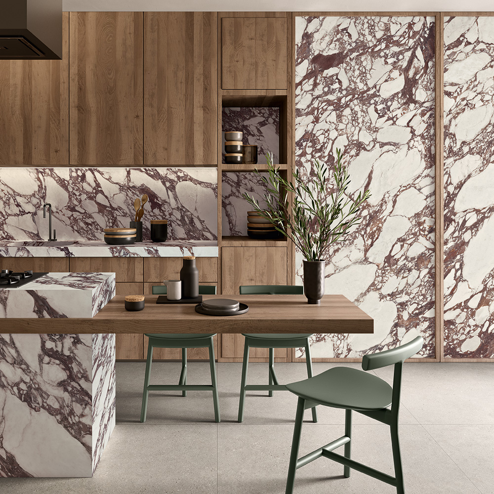 Surfaces that stand out, yet, at the same time, are able to coexist in harmony with one another, allowing for total creative freedom and giving rise to unique and striking combinations.