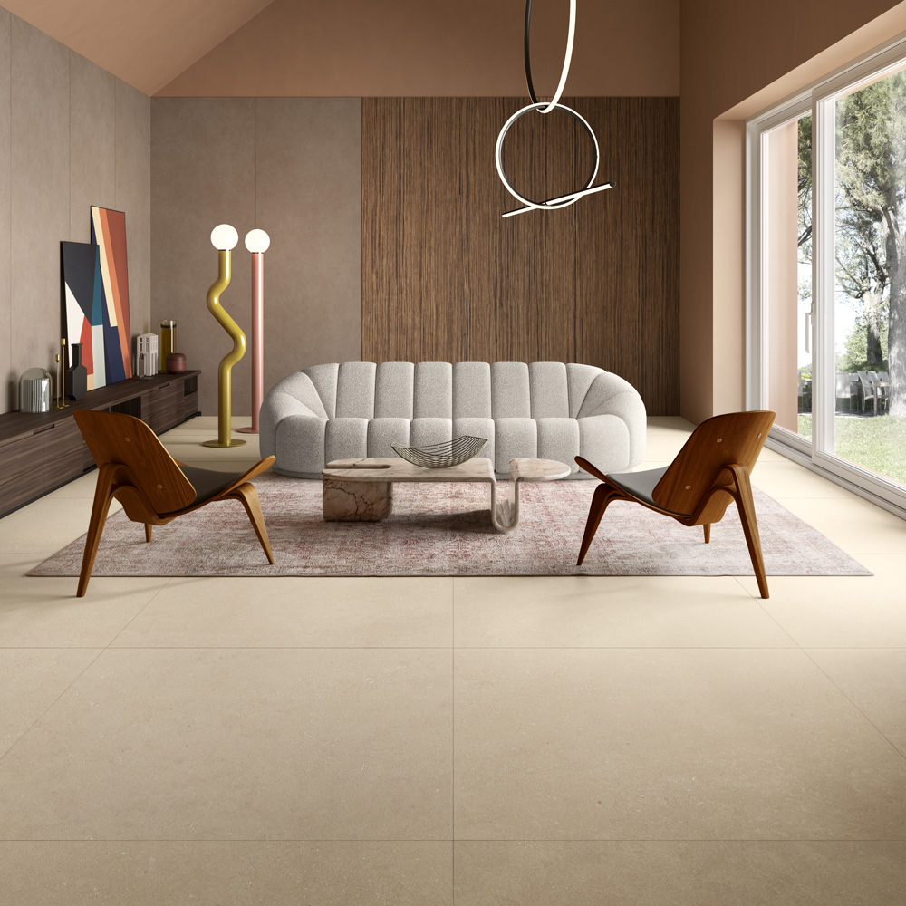 Inspired by sedimentary limestone, Intense brings to life deep, emotive, and dynamic surfaces. Its texture captures the material in its most expressive state, characterised by gentle undulations, rich colours, and sophisticated imperfections. A neutral palette, with a bold and distinctive presence.