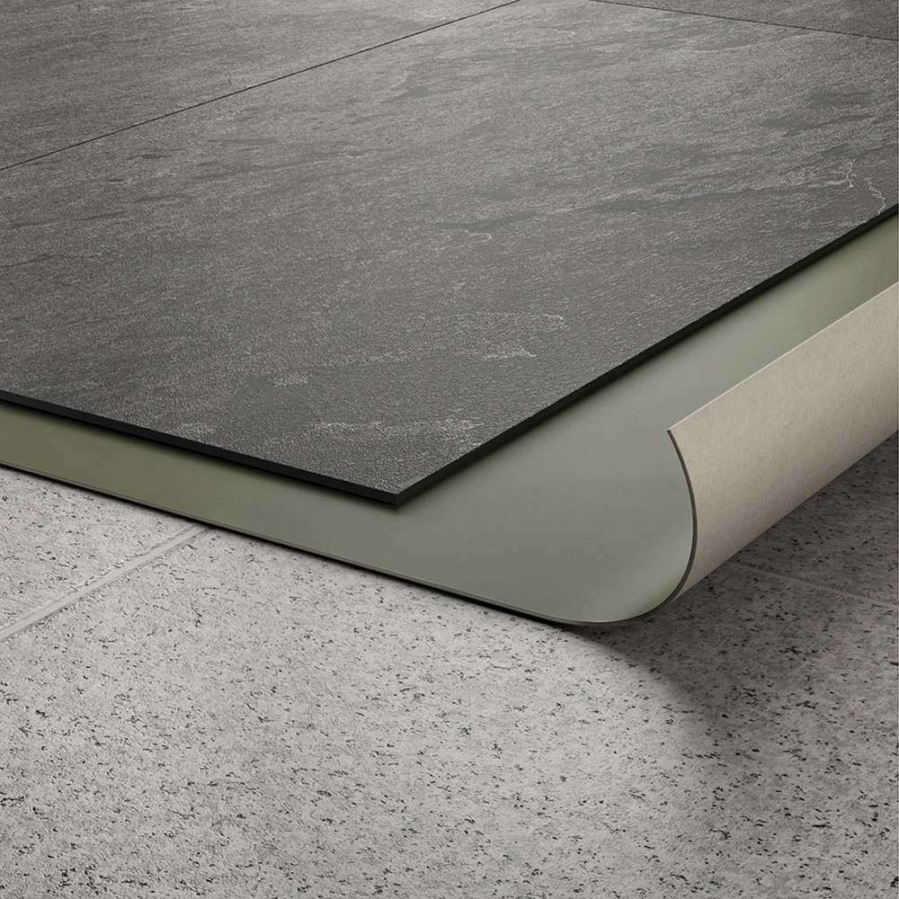 With a thickness of only 7 mm, this system is used for the installation of a new kind of highly durable porcelain stoneware flooring that is perfect for interior residential or light commerical use.