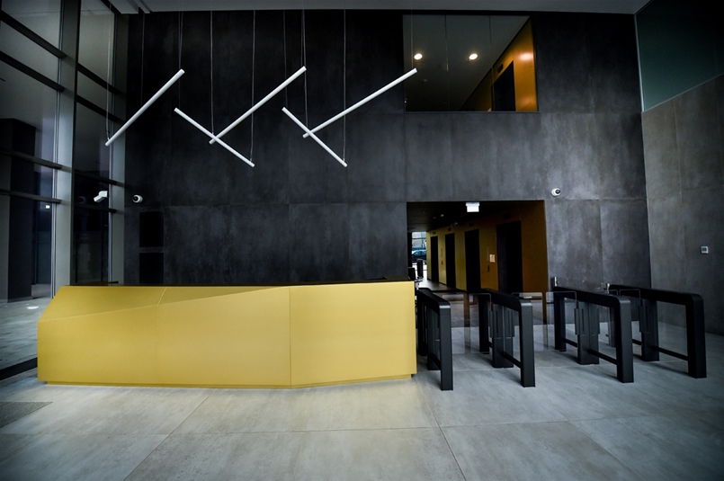 Concreto is the Lea Ceramiche collection chosen for the floors and walls of the entrance lobby. Thanks to the lighter colour, Concreto Light, and the darker shade, Concreto Dark, the collection created a modern and linear contrast between the soft brightness of the floors and the elegant dark grey of the walls. Inspired by the material that best symbolises modern architecture, concrete, it is an extremely tactile and contemporary series in which Lea Ceramiche’s hallmarks – attention to detail and an ability to interpret the demands of interior design – are fully and emphatically expressed. This true architectural surface enhances the sophisticated contemporary look and is well-suited to the style of the Aréna Business Campus.