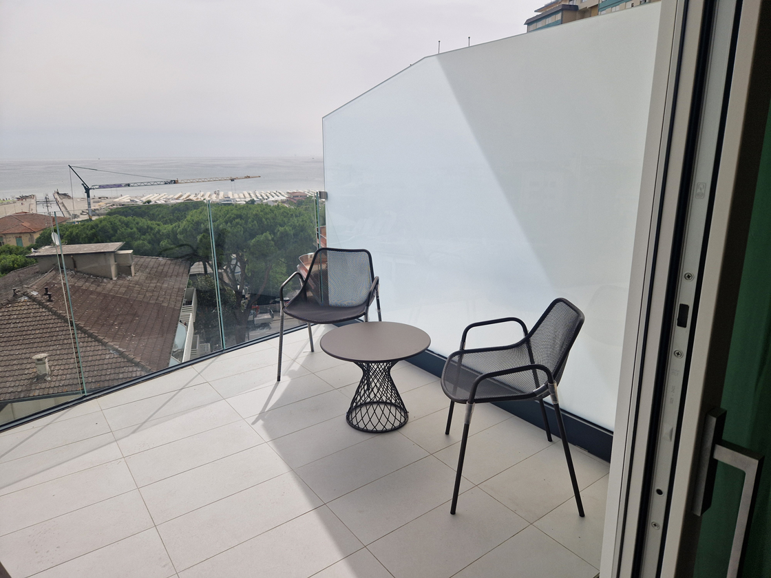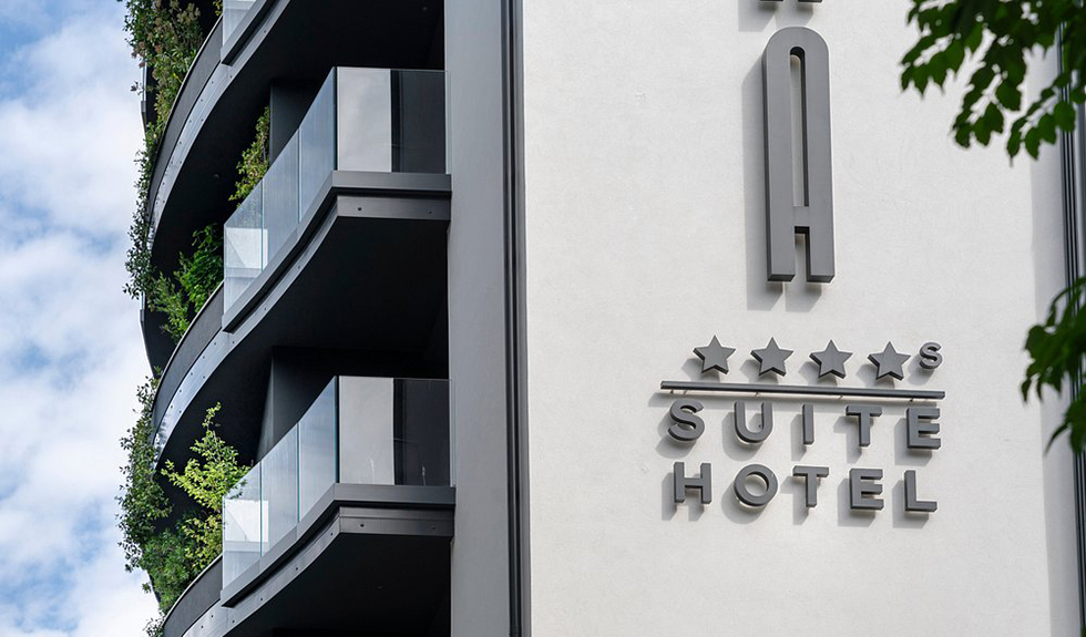 Fluid lines, curvilinear balconies and large glazed surfaces shape an architecture of solids and voids, where material and transparency meet in a refined balance. The building, arranged over nine floors, houses 37 rooms and four suites, culminating in a panoramic spa overlooking the horizon at 360°, where light becomes material and creates spaces of balance, well-being and silence.