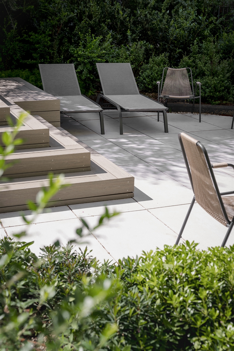 The combined use of different installation techniques – glued installation on surfaces closer to the building and raised installation on gravel in areas in contact with greenery and the swimming pool – highlights the flexibility of the collection and enhances its performance in terms of drainage, stability and maintenance.