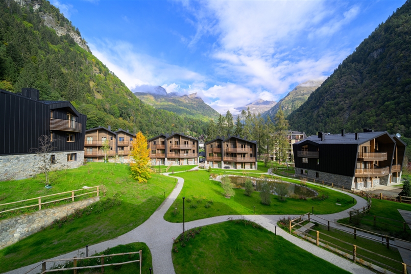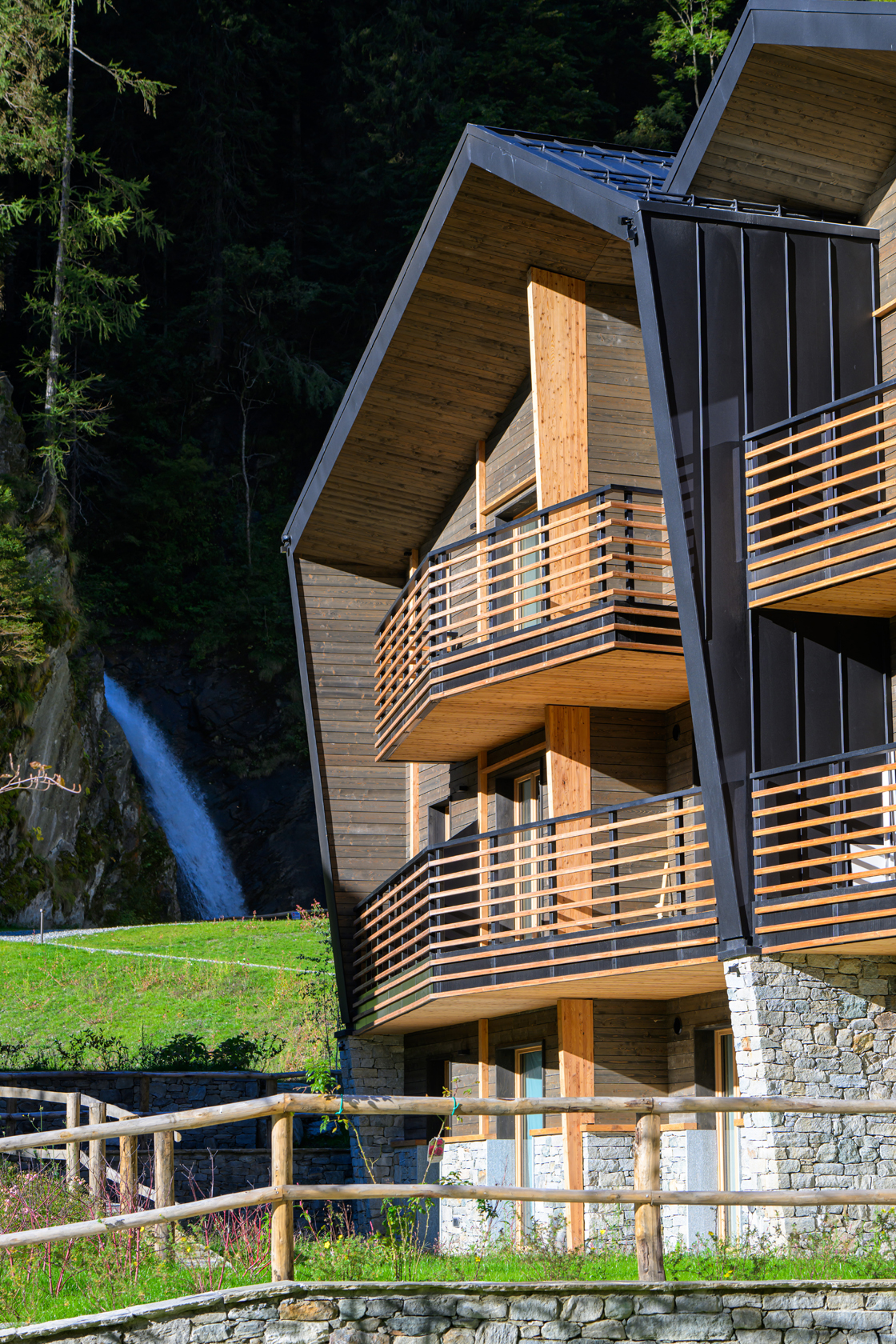 In Alagna Valsesia, among woods and streams at the foot of Monte Rosa, Mountain Village — Cascata d’Otro reinterprets Alpine tradition in a contemporary key. Designed by G22 Projects for Pink Mountains, the residential complex consists of eight A4-class buildings, perfectly integrated into the landscape and conceived for a new way of living the mountains, sustainable and refined.