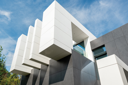 The ventilated façade of the villa is signed Lea Ceramiche with the Absolute collection, which gives the outer structure the maximum chromatic balance with the Total Black and Grey Flow solution of the Waterfall collection for a high-impact aesthetic effect. Indoors, for the realisation of the staircase that leads to the second floor, Waterfall was instead chosen. This collection is inspired by slate and proposed in the Dark Flow shade. For the two master bathrooms, the Nest and Noblesse collections have been chosen: the first characterised by a series of triangles and hexagons that have allowed the designer to invent new aesthetic paradigms; the second, thanks to its marble effect and the incredible realism, is able to give the room an allure of luxury and seduction.