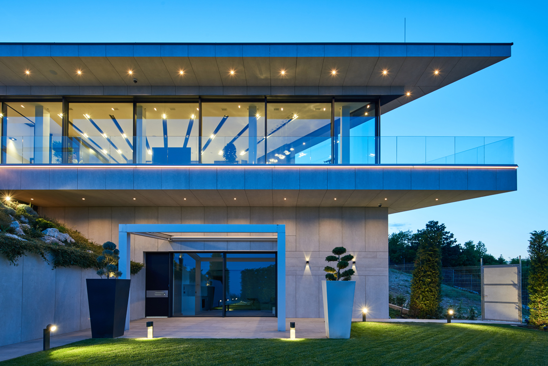 A spectacular villa with an unusual design that is sometimes sharp and bold and always ultra-modern, nestled in the leafy 12th district of the picturesque city of Budapest. Built on several levels, the sumptuous residence features a white ventilated façade that pleasantly contrasts with the green of the surrounding landscape.