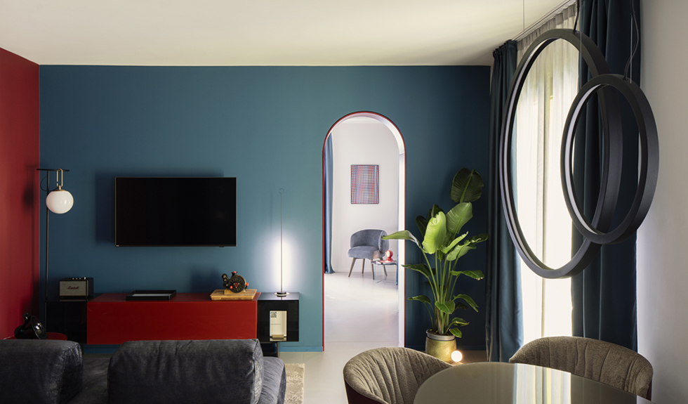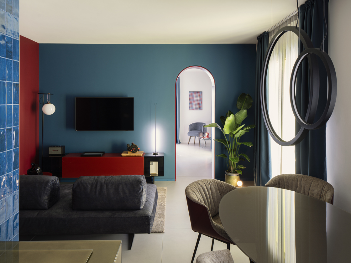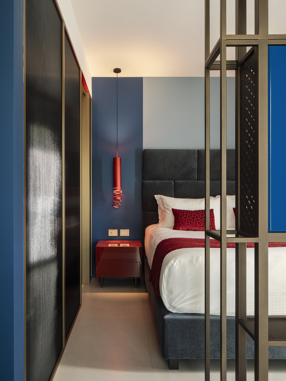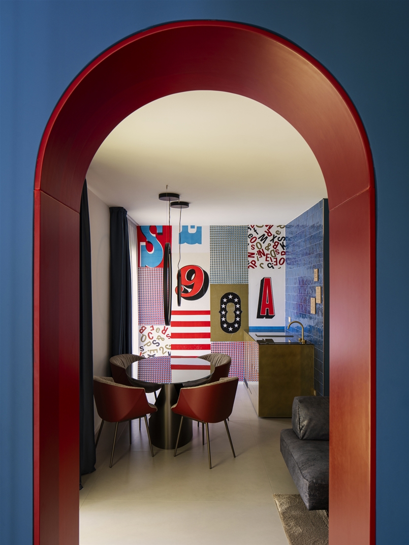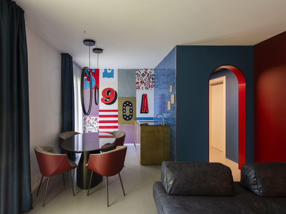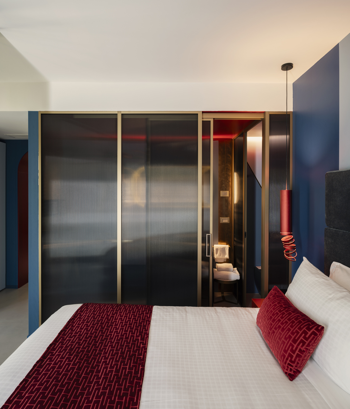 A vibrant palette that amplifies the emotional dimension of the suite and translates the Fellinian identity of the project into architecture.