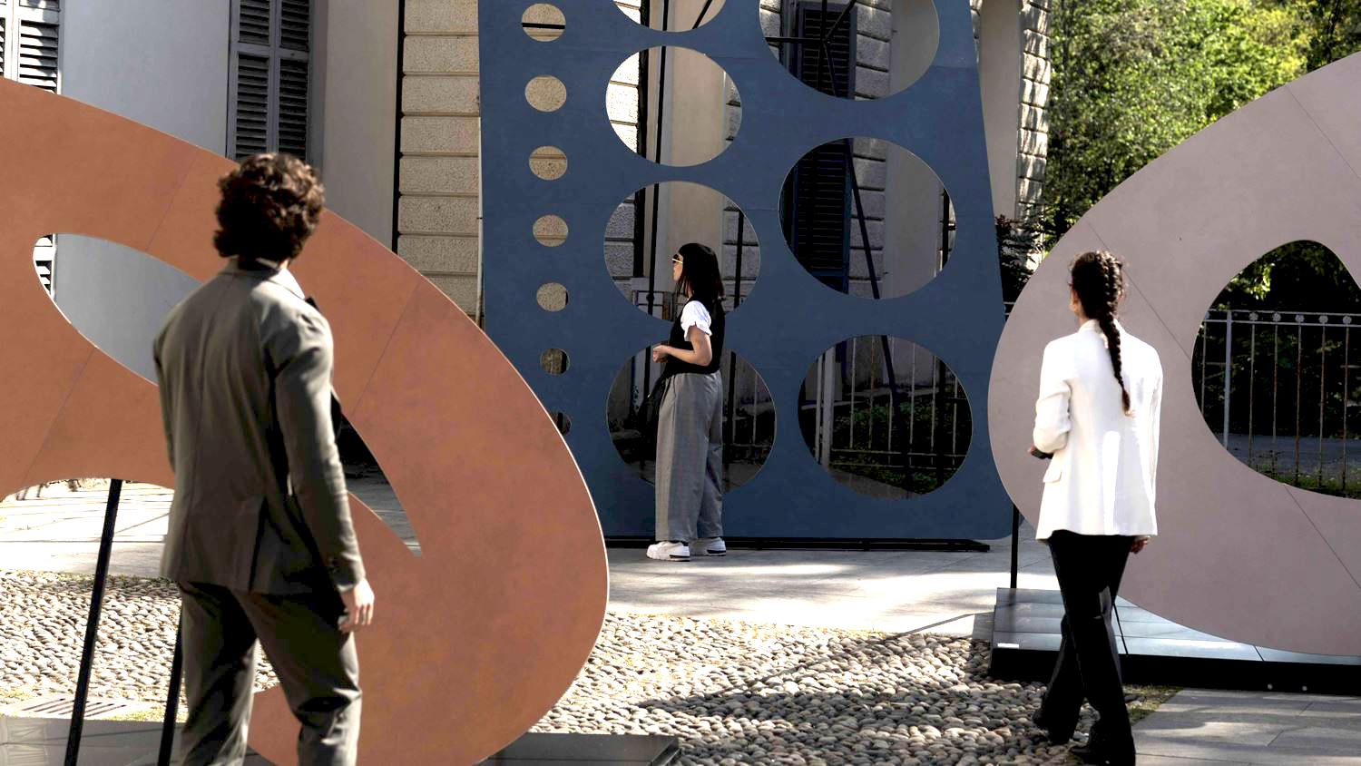 “There are objects from the not-so-distant "analog" era that can still convey the manual skill of a certain way of designing. "Tools and Space" celebrates, in the surrealistic manner of Savinio's "Games in the Forest", an era when tools from a recent past (compasses, French curves, or rulers) were used to draw space and architecture. This installation, and specifically the Pigmenti collection by Lea Ceramiche, also becomes an expressive tool to generate new forms and volumes, a sort of surrealistic monument of an ideal Italian piazza by De Chirico, suspended between the Neoclassical architecture of Palazzo Reale and that of the PAC by Ignazio Gardella.”