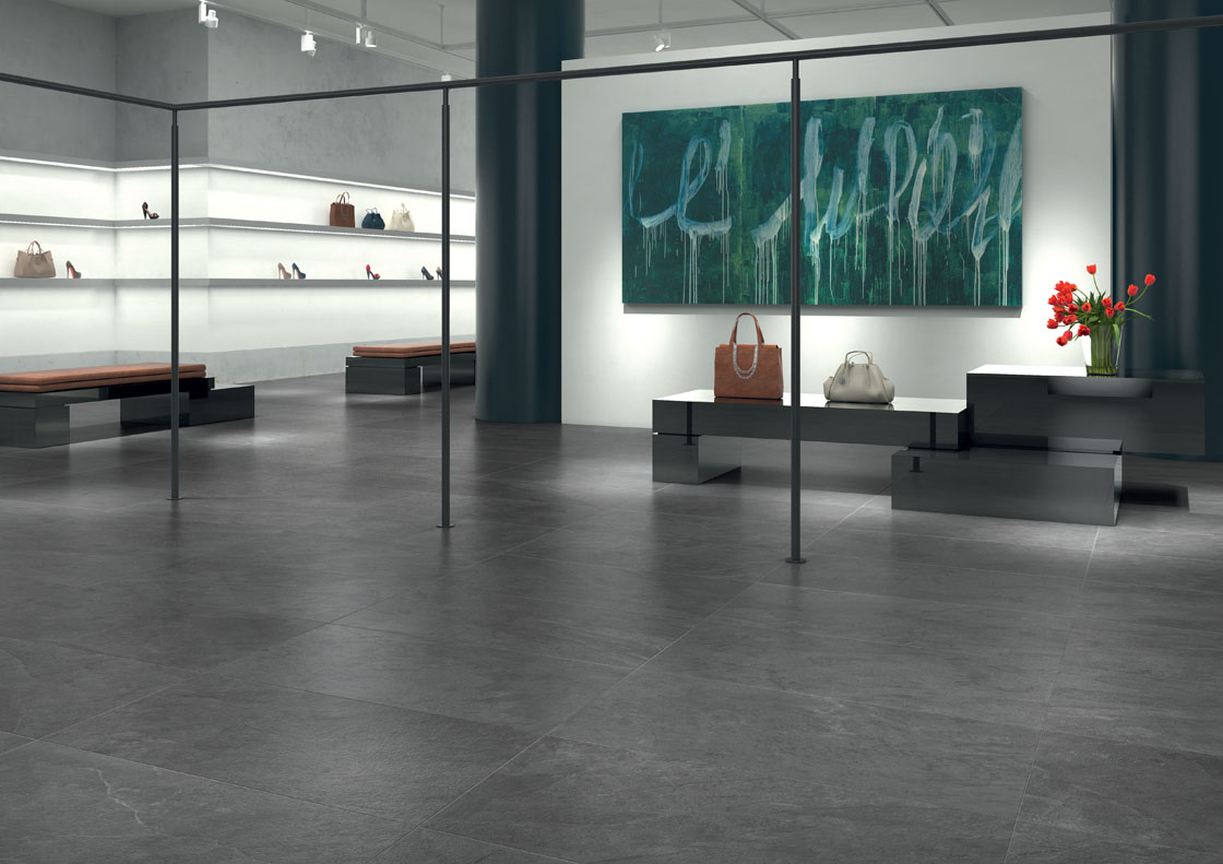 The colours, in grey scale, vary from the darkest tone, “dark flow”, to the lightest, “ivory flow”, recalling the natural oxidation process of the stone, a material that is under continuous transformation, changing colour, shape, and structure, and adapting itself to the evolution of natural phenomenon.